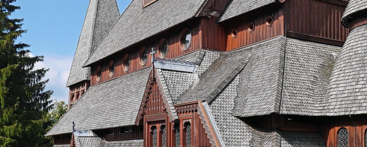Roof shingles are almost always highly visible and so are an important aspect of a building’s aesthetics in patterns, textures and colors. Roof shingles, like other building materials on vernacular buildings, are typically of a material locally available. The type of shingle is taken into account before construction because the material affects the roof pitch and construction method: Some shingles can be installed on lath where others need solid sheathing (sheeting) on the roof deck. All shingle roofs are installed from the bottom upward beginning with a starter course and the edge seams offset to avoid leaks. Many shingle installations benefit from being placed on top of an underlayment material such as asphalt felt paper to prevent leaks even from wind driven rain and snow and ice dams in cold climates. At the ridge the shingles on one side of the roof simply extend past the ridge or there is a ridge cap consisting of boards, copper, or lead sheeting. An asphalt shingle roof has flexible asphalt shingles as the ridge cap. Some roof shingles are non-combustable or have a better fire rating than others which influence their use, some building codes do not allow the use of shingles with less than a class-A fire rating to be used on some types of buildings. Due to increased fire hazard, wood shingles and organic-based asphalt shingles have become less common than fiberglass-based asphalt shingles. No shingles are water-tight so the minimum recommended roof pitch is 4:12 without additional underlayment materials.